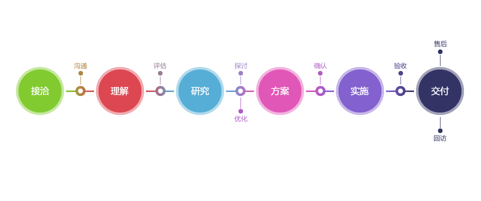 清晰、可視、可持續(xù)改進的研發(fā)流程服務,在每個環(huán)節(jié)我們都秉承著打造高品質移動互聯(lián)網解決方案的開發(fā)理念。
